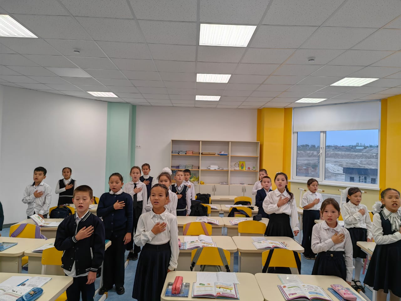 №55 орта мектеп МКМ әр дүйсенбі күні мемлекттік Гимнның орындалуы туралы ақпарат